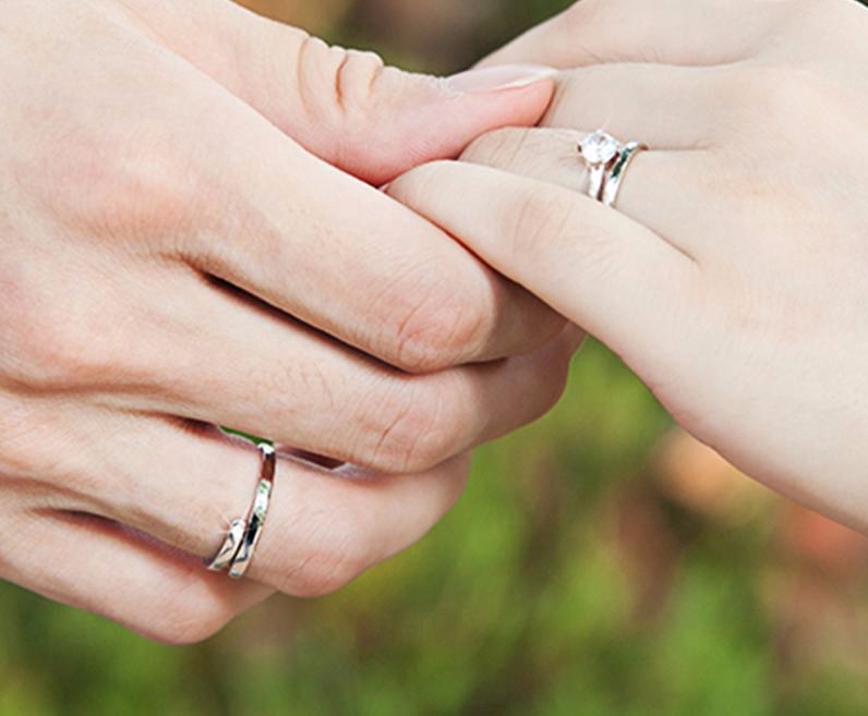 Silver Diamond Cut & Rhinestone Couple Ring